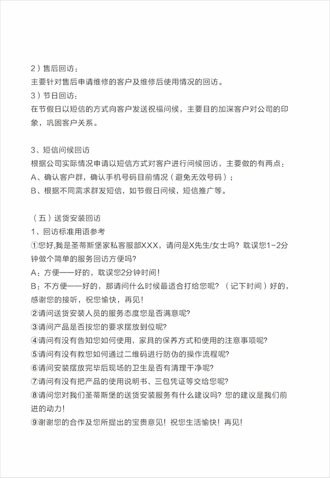 心理准备:充分理解顾客信息,对上门的路线,时间要予充分考虑。按时上门,严禁迟到或无故失约,若中途出现特殊情况,必须提前与顾客联系,解释原因,并向顾客道歉。
